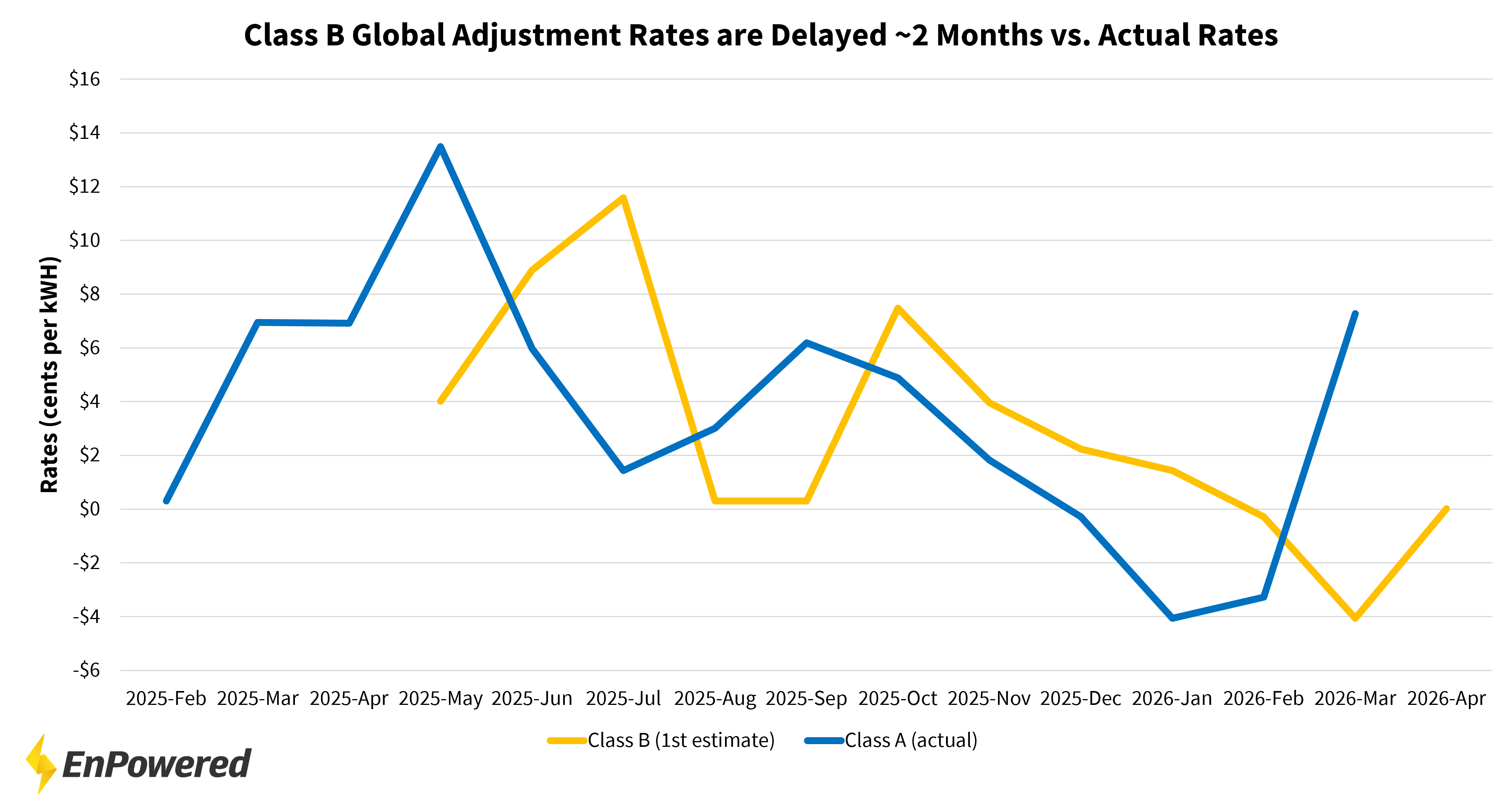 Class A and Class B Global Adjustment rates are not designed to move together month-to-month. They reflect the same system costs—but at different points in time.
